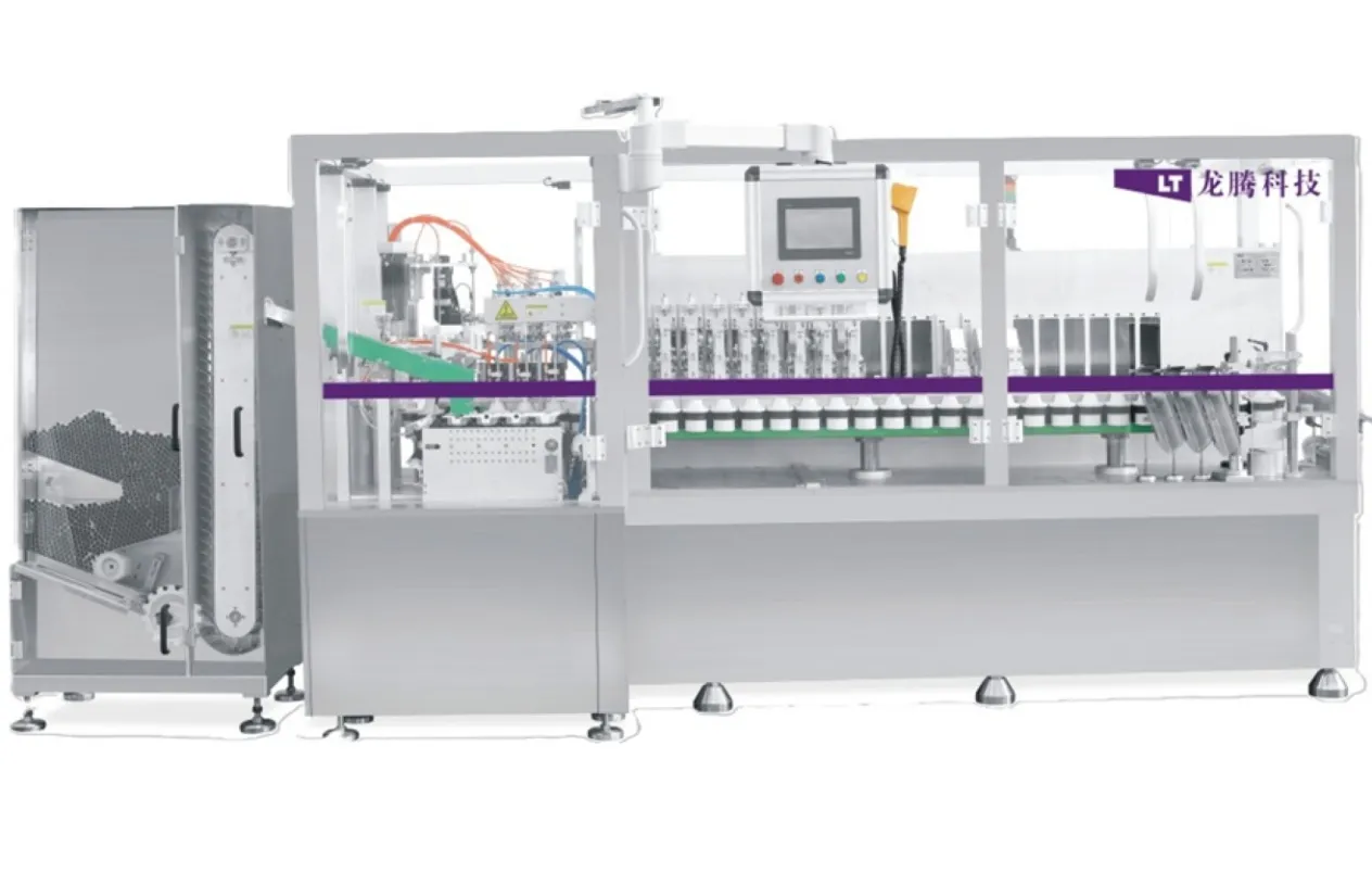 يتضمن تصميم هذه الآلة نظام دفع رئيسي فريد، مع ست مجموعات من أنظمة التحكم في الحركة السيرفو. الكامة هي جزء من الفولاذ المطروق، مما يضمن عمر خدمة أطول لها. فوق سطح العمل، تُستخدم محامل انزلاقية مقاومة للتآكل لتقليل التلوث. النظام مجهز بخزانات مضخات سيراميك للتعبئة، مما يضمن عدم حدوث تسرب خلال العملية. جميع المكونات التي تتلامس مباشرة مع المنتجات المعبأة مصنوعة من الفولاذ المقاوم للصدأ SUS316L؛ الأبواب والأغطية أسفل منضدة العمل مصنوعة من الفولاذ المقاوم للصدأ SUS304.